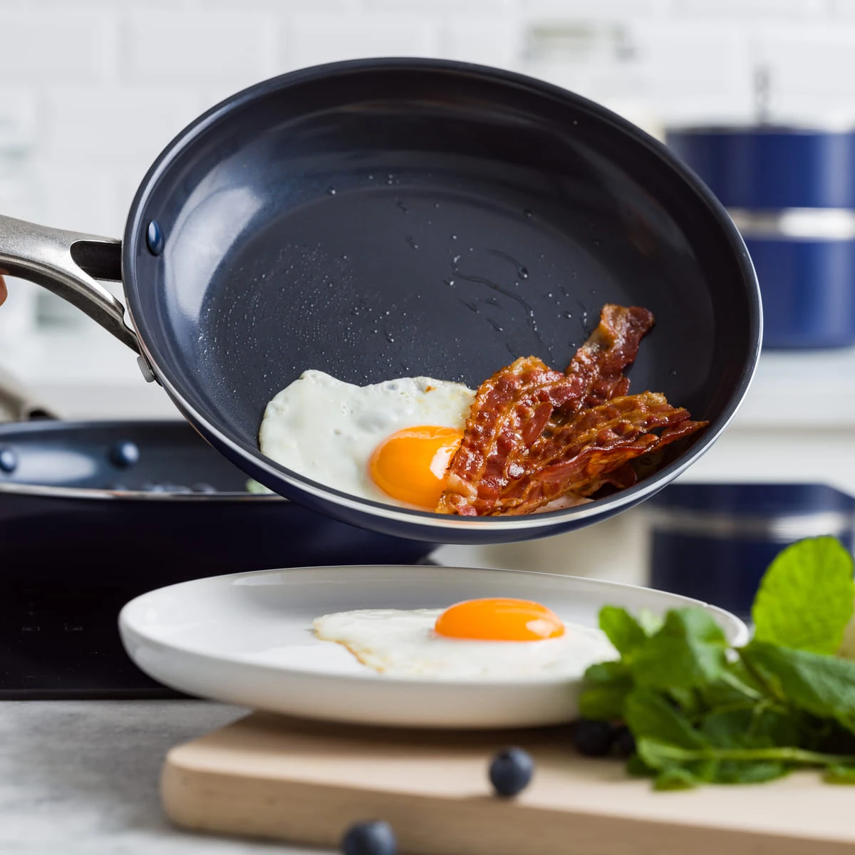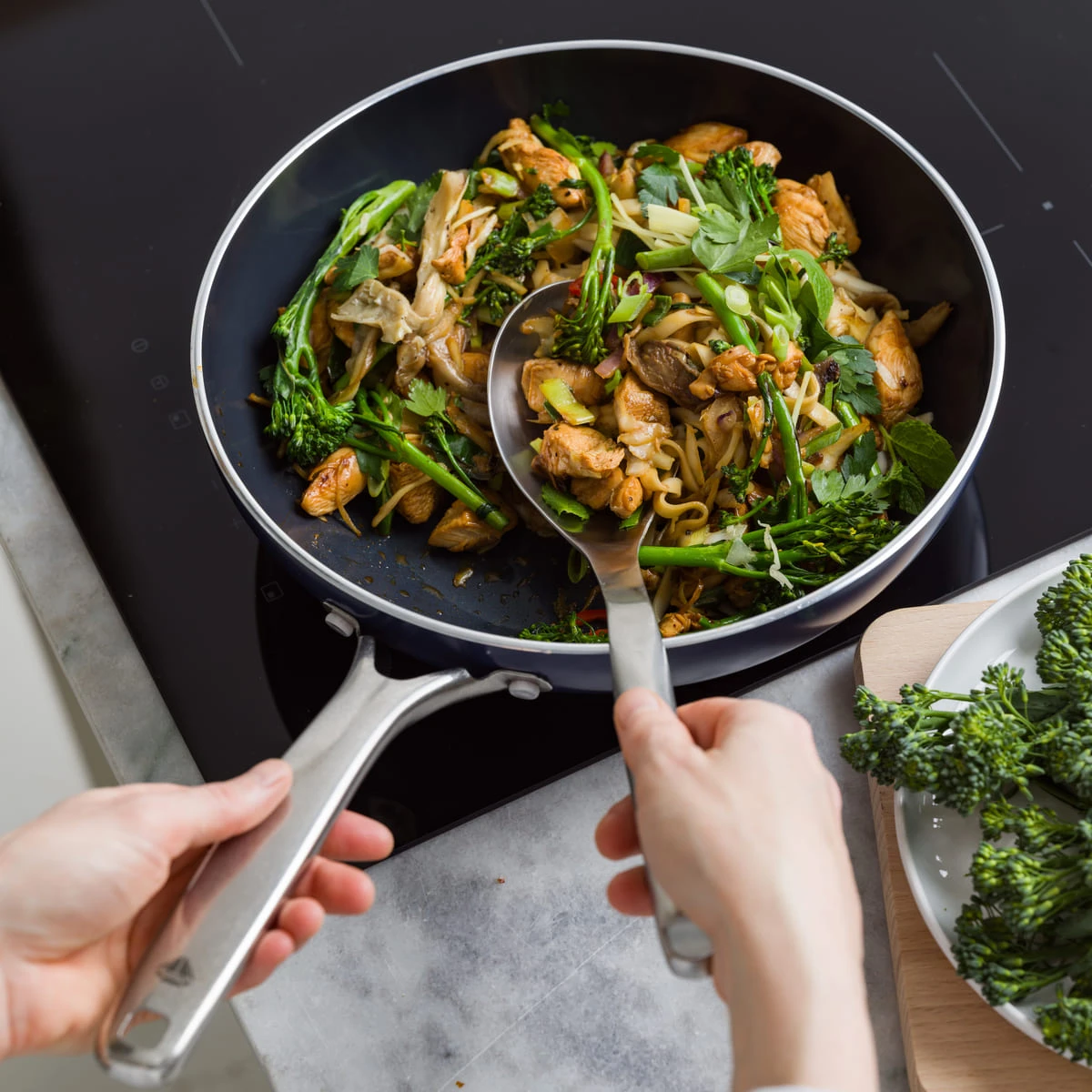 Looking for an incredible kitchen staple? Discover easier cooking with this spacious 26cm frypan featuring our diamond-infused nonstick and a warp control base. Heat meals quickly and evenly then watch food slide right off for an effortless cleanup!