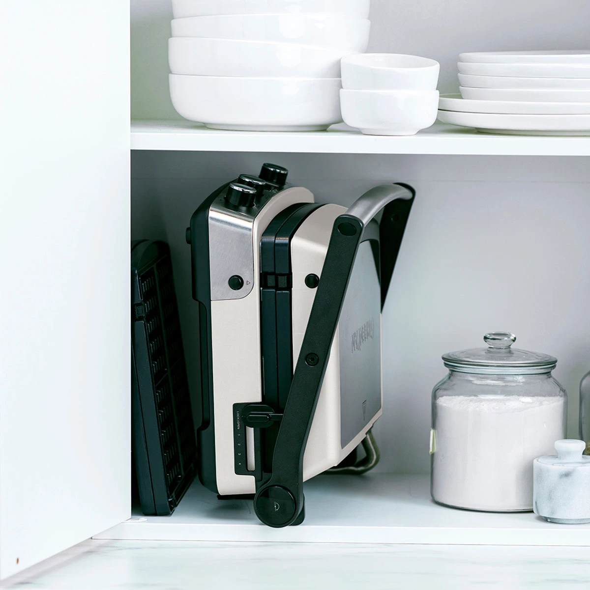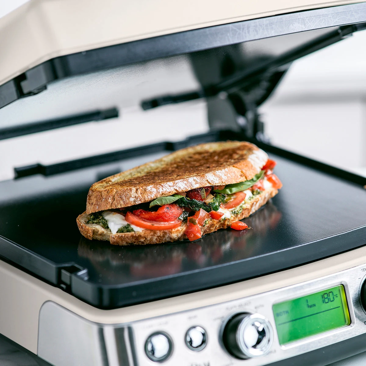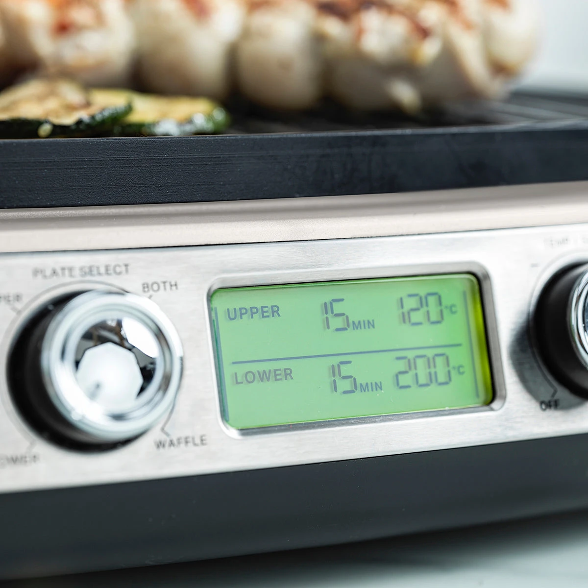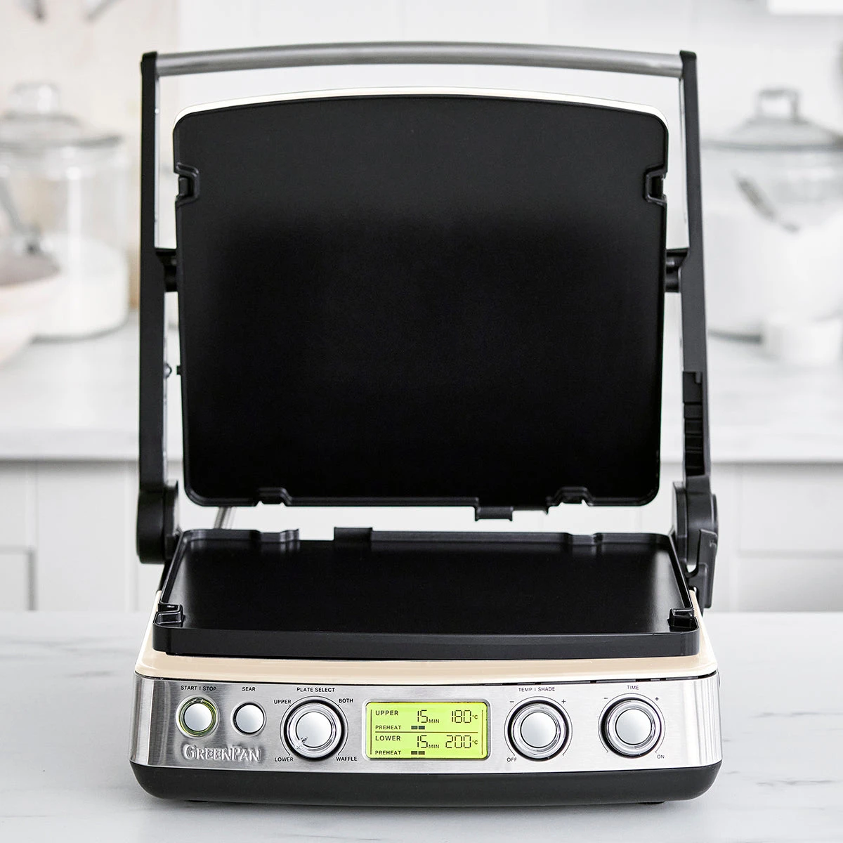 It opens flat to make sure you have room for your meal. The easy-to-use controls allow you to customize the time and temperature settings of each reversible cast aluminum plate. And cleaning up is simple thanks to Thermolon Volt, our pioneering ceramic nonstick coating made specially for kitchen appliances. Get more from your appliances with GreenPan.