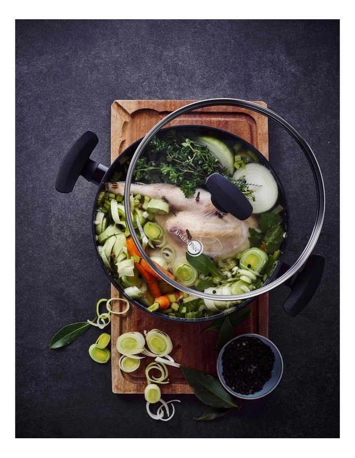 Since we invented ceramic non-stick in 2007 weve been dedicated to making smarter, better cookware for everyone. This sleek black collection effortlessly blends innovation and style it has a seamless look & feel thanks to the V-shaped flameguard handle, it stores and stacks easily, and our most advanced coating gives you unparalleled performance.GreenPan Smart collection black edition. Intuitive. Efficient. Easy. Smart.