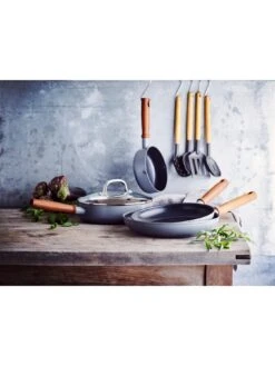 Containing a 24 and 28 cm frying pan, this 2-piece set uses a unique design to offer a minimum of 25% more cooking surface than other GreenPan ranges. They do this with steeper, more vertical sides than usual, which allows the base to extend further out so that you can cook bigger portions for more people at once.