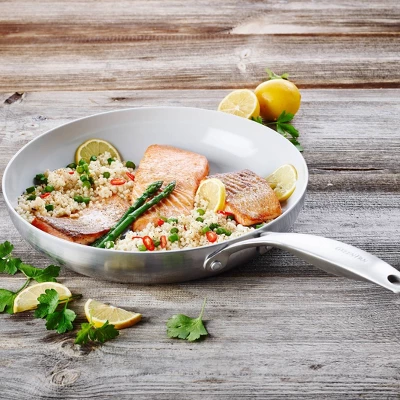 - Stay-cool riveted stainless steel handles give you extra stability and make oven transfers a breeze