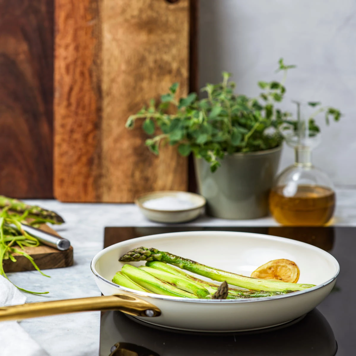 This set from our Padova collection is more than its looks: the duo forged hard anodised aluminium construction makes them extra tough and scratch-resistant while also promoting even heat distribution. Each piece features our Thermolon healthy ceramic non-stick coating, which is reinforced with diamonds to make it ultra-durable and heat responsive (all free of PFAS, PFOA, lead, and cadmium). With a set that’s made to cover everything, the meal possibilities are endless – flavourful frittatas, stir fries, and perfectly seared seafood are just the start.