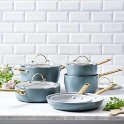 Padova 10pc Cookware Sets, Smokey Sky Blue