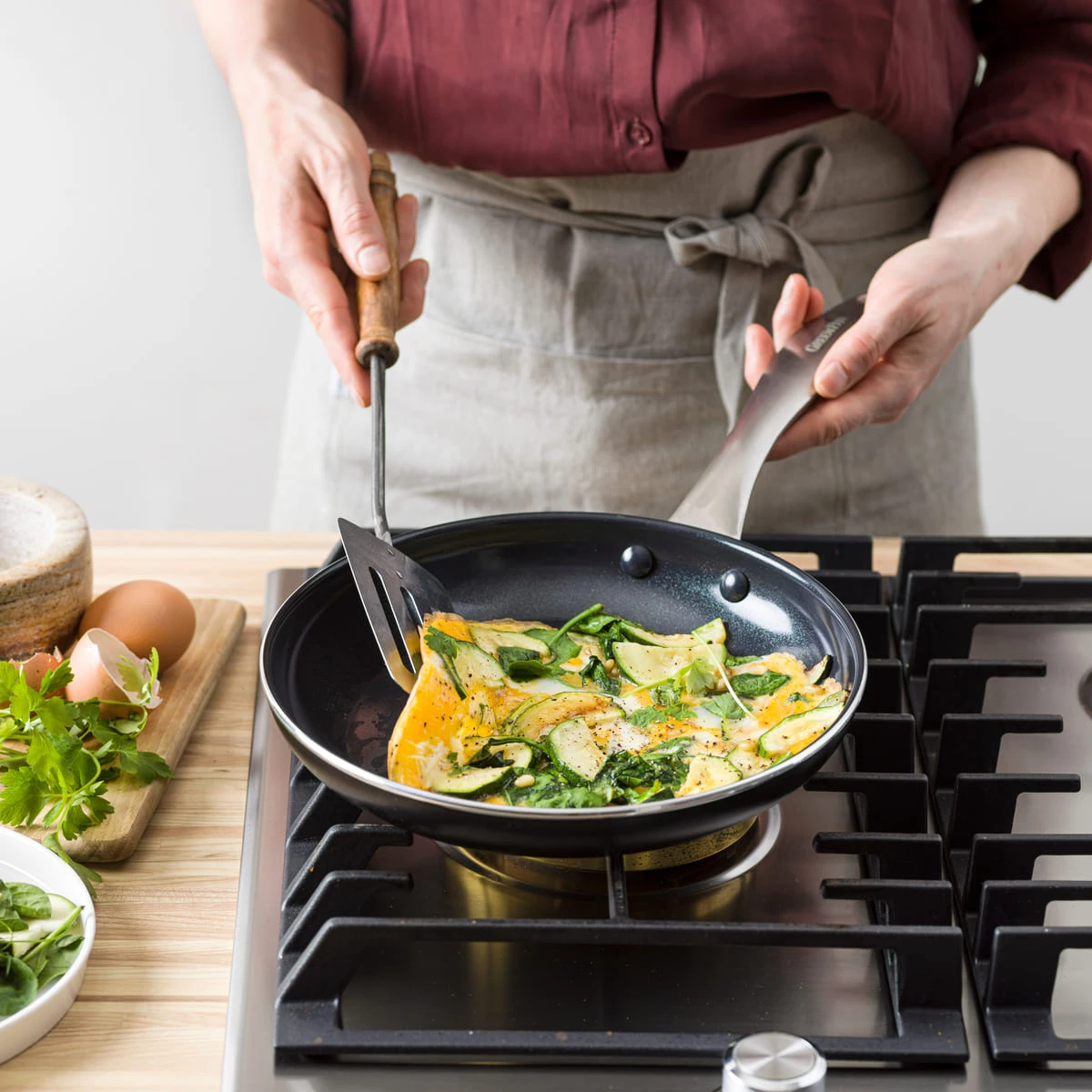 Royal is perfect to give your daily cooking sessions an elegant touch! Its timeless design includes a brushed stainless steel handle. The collection features our Thermolonâ„¢ ceramic non-stick coating, which is reinforced with diamonds to make it ultra-durable and heat responsive (all free of PFAS, PFOA, lead, and cadmium). This non-toxic cookware is made of high-quality aluminium, which makes it perfect for heavy-duty use. A thick forged base guarantees even heat distribution and maximum hob stability while the drip-free edges make pouring simple. The range performs excellent on all stovetops and is oven & dishwasher safe for everyday convenience.