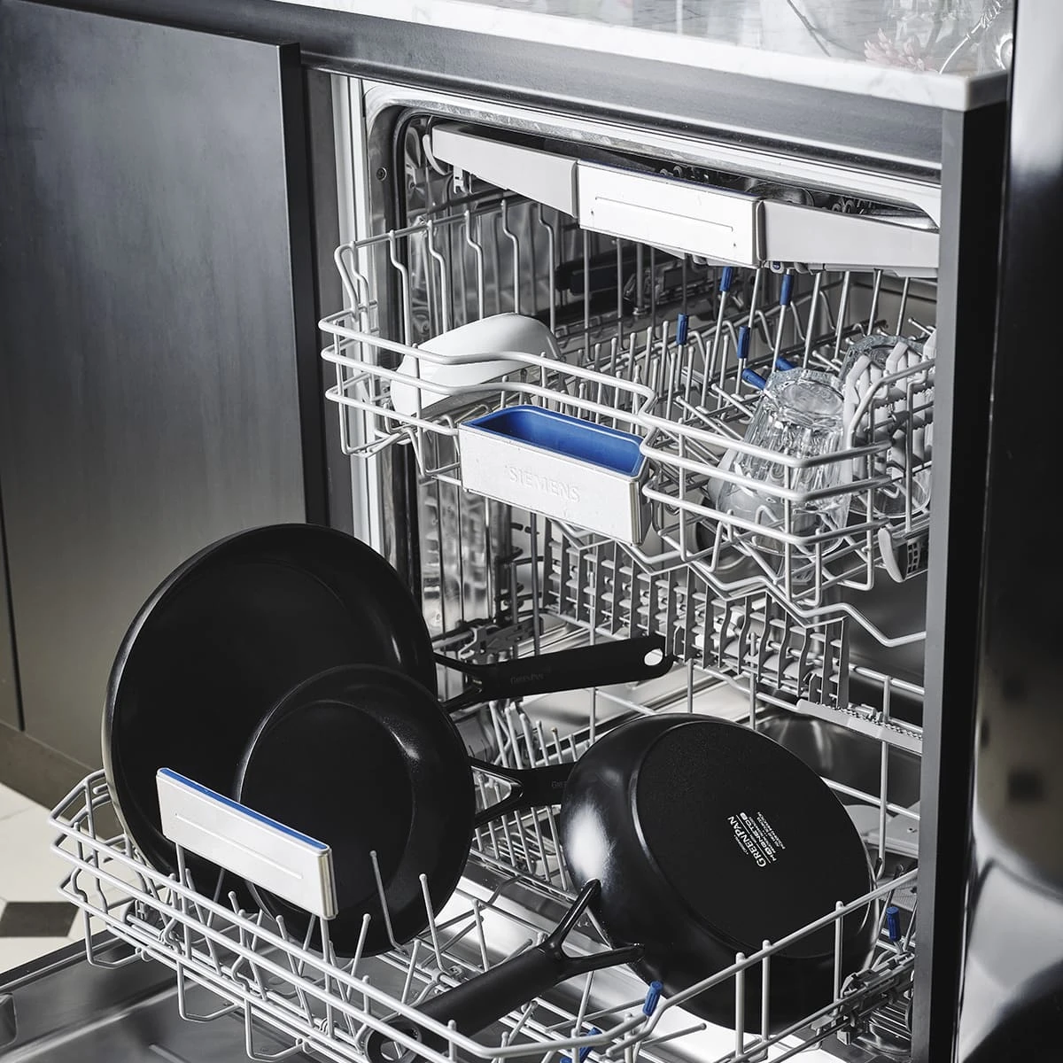 A lot of thought went in these pans. The handles stay cool thanks to a rivetless v-shaped design, which allows these pans to store and stack easily, creating up to 30% more cabinet space. Crafted from hard anodised aluminium and finished with a Magneto base, these pans are extra tough and produce incredible results all on stovetops.