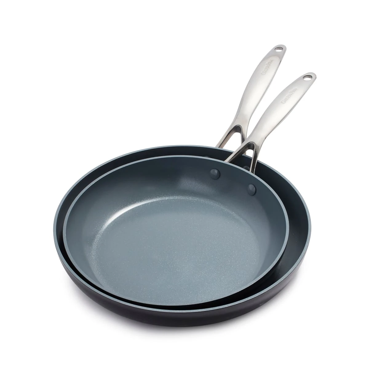 Crafted from hard anodized aluminium for maximum strength and scratch resistance, these pans go the distance. In a handy 26 and 30cm set, they’re ready to sear steaks, braise veggies, or whip up an omelet at a moment’s notice.