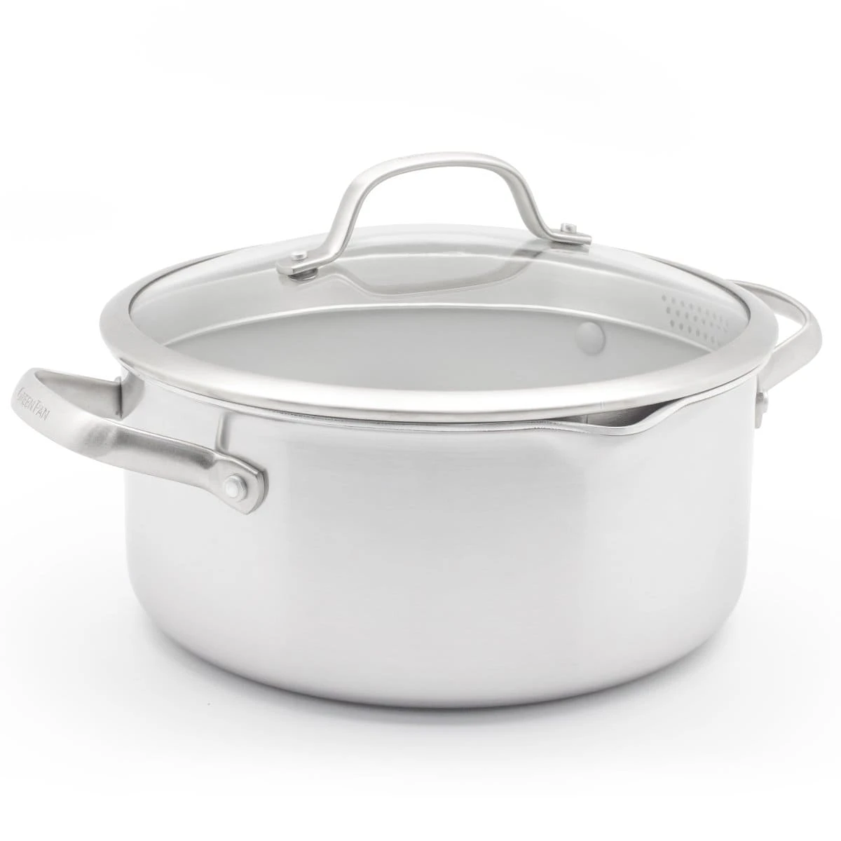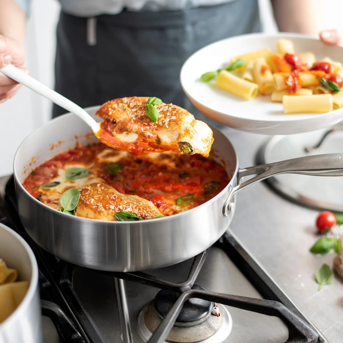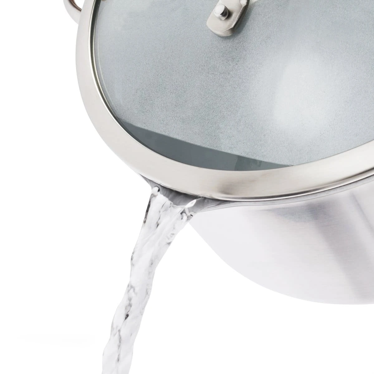 The Venice Pro collection is painless stainless—an incredible blend of non-stick ease and gorgeous stainless steel style. This collection’s Thermolon ceramic non-stick coating is infused with diamonds for remarkable durability, balanced heating, and effortless cleanup. Thermolon can do what other non-stick coatings can’t—that means easy searing, braising, and deglazing without worrying about a mess. The 3-ply stainless steel bodies feature Evershine, a unique finish that helps to prevent discolouration and keeps your pans looking like new longer. The matte-finished, riveted stainless steel handles let you go from stovetop to oven with ease. Each pan in this set wipes clean, but they’re all dishwasher safe for big messes. The set’s cook and look glass lids give you easy food monitoring and are oven safe up to 200°C. Suitable for all cooking surfaces including induction.